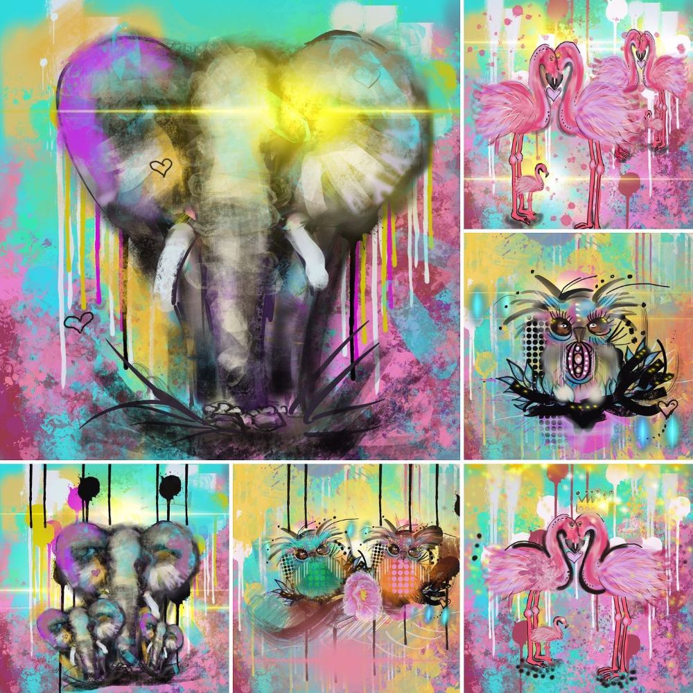 Colorful coasters with 6 different vibrant motifs designed by Camilla Dahlstrom.
